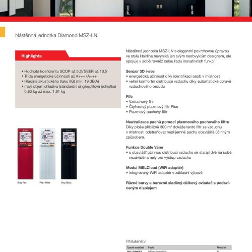 Nástěnná jednotka MSZ-LN s elegantní povrchovou úpravou ve stylu Hairline nevyniká jen svým neobvyklým designem, ale spojuje v sobě rovněž celou řadu inovativních funkcí.